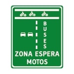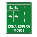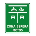 Esta señal se usa para informar la existencia de una línea de detención adelantada para motociclistas, la cual genera una zona de espera exclusiva para motos.